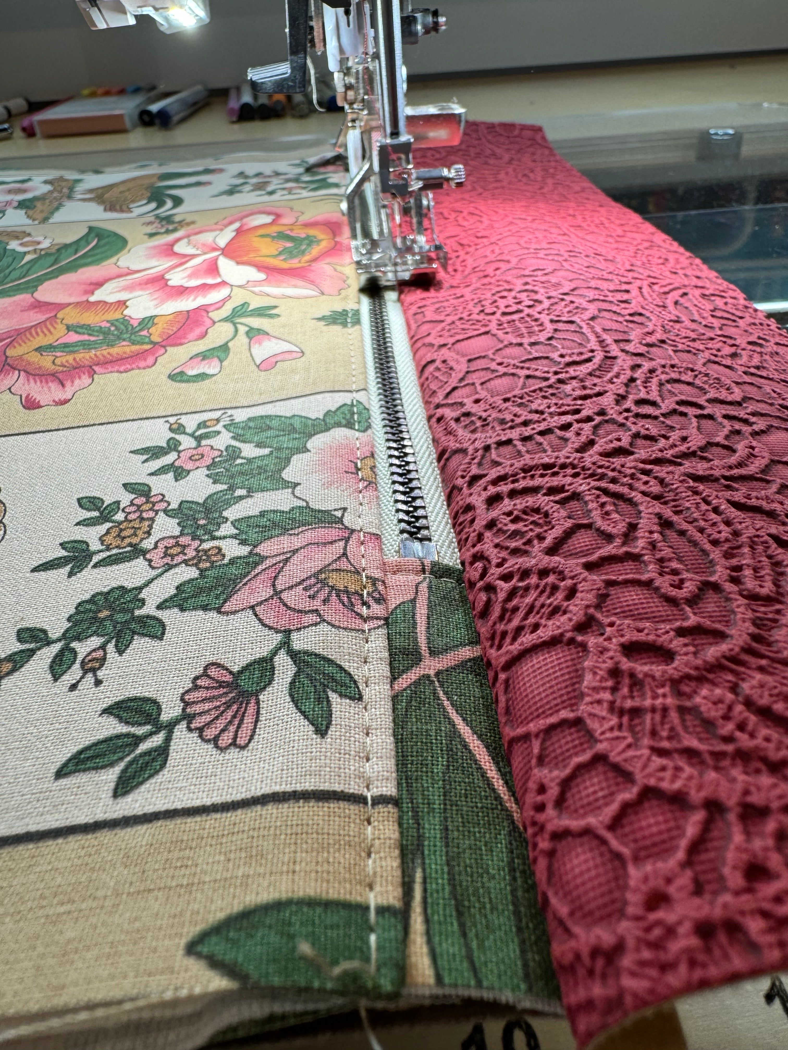 I select, cut, and sew the fabrics in each of my bags together on my sewing machine in my home studio with ultimate care and attention to detail.