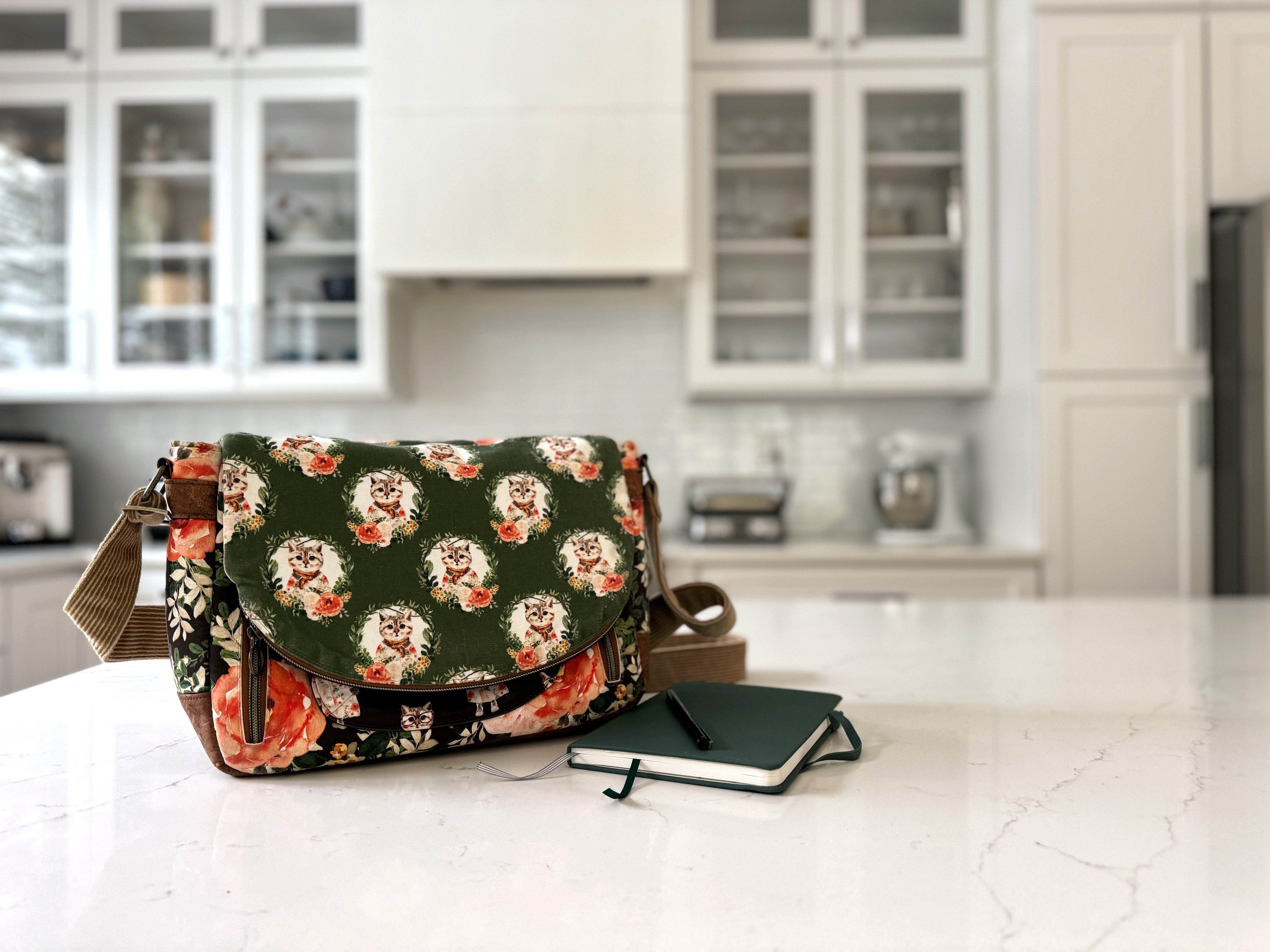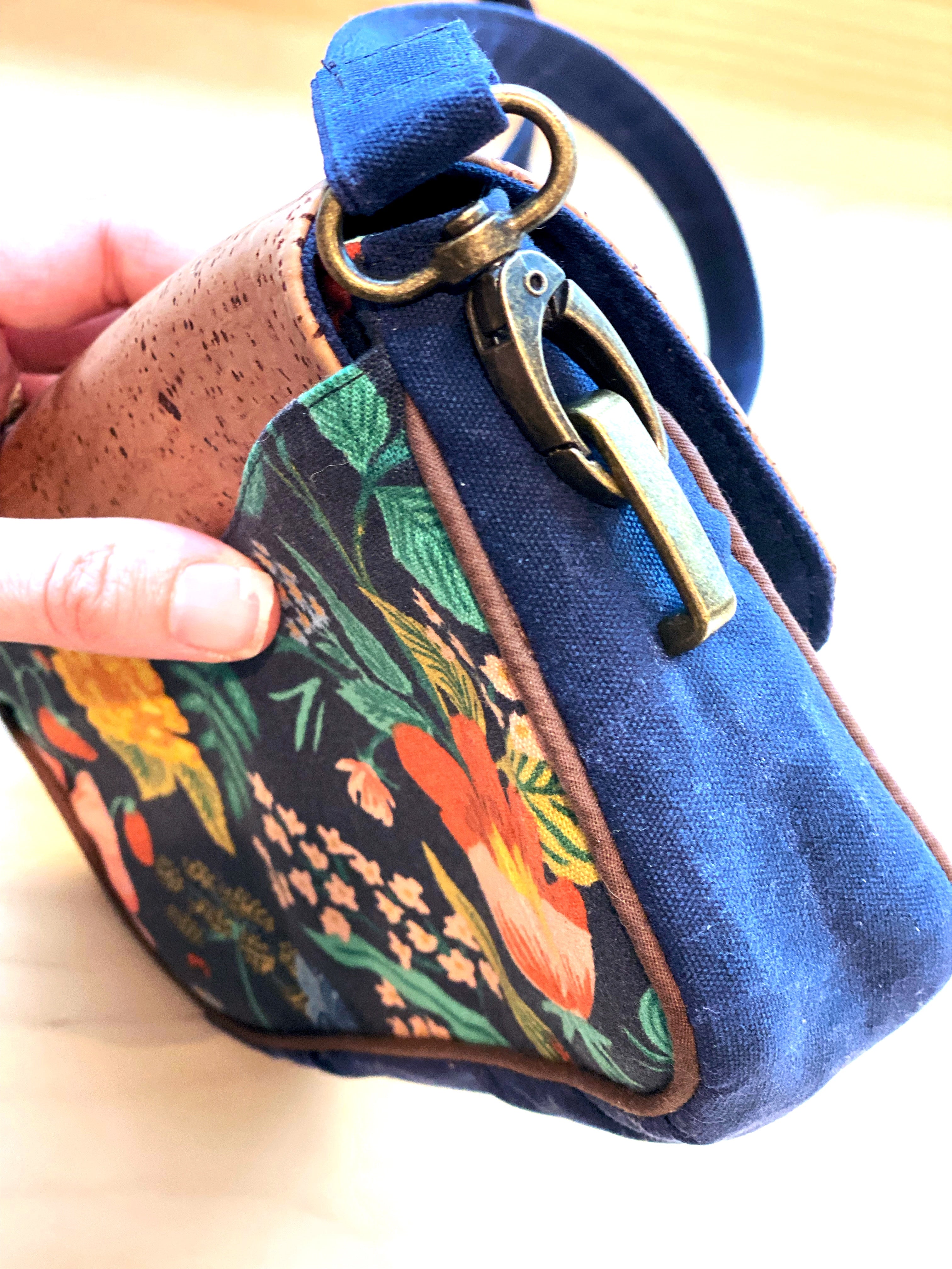 After years of making curtains, cushion covers, quilts, clothes, and stuffed animals I turned to bags. I couldn’t stop making new styles for every purpose - small pouches, toiletries, shopping bags, wallets, and big travel duffels. I got a kick out of canvas fabrics from Japan featuring cats wearing glasses, sloths in trees, and woodland animals having tea. My bags became a chance to express my love of whimsical things and I delighted in pairing the fabrics with sophisticated vegan leather, Portuguese cork, and shiny brass hardware.